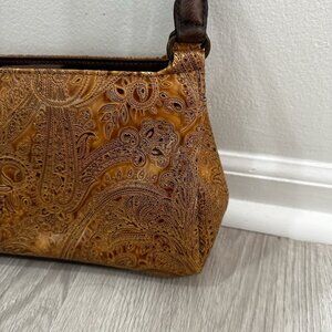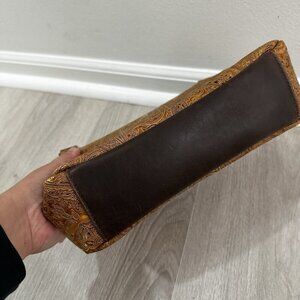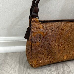 Vintage Relic Embossed Tan Brown Paisley Shoulder Bag With Brown Braided Strap