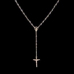 Vintage Religious Rosary Black Wooden Beads Silvertone Chain Italy