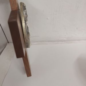 Vintage Religious Wooden Cross Plaque & Metal Ornament Rare Image