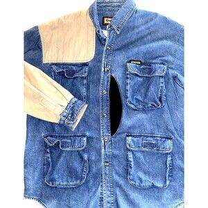 Vintage Remington Hunting Shacket Men's Large Denim with Game Pouch Pockets