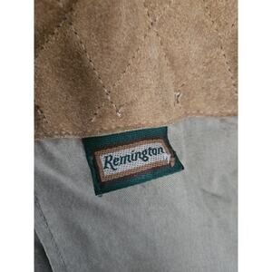 Vintage Remington Jacket for hunting/shooting. Pocket on arms, 2 pockets on front, and back portion zips off. Leather on chest. Corduroy collar. Made in USA.