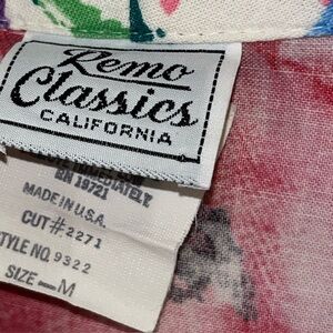 This Vintage Remo Classics California Open Blazer is a stylish and unique piece made in the USA from 100% cotton. The vibrant floral pattern adds a pop of color to your outfit, while the regular fit and blazer style make it a versatile addition to your wardrobe. With a chest size of 40” and a shoulder to shoulder measurement of 17.5”, this original piece is perfect for a women's size M. The shoulder to hem length of 26.5” ensures a comfortable and fashionable fit. Made in the USA, this blazer is a timeless and high-quality piece for any vintage lover.