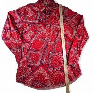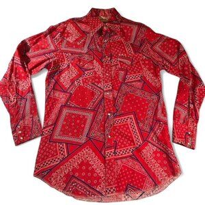 Vintage Remuda Western Pearl Snap Shirt | Large | 1970's Red Bandana Print | EUC