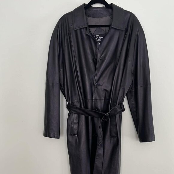 Vintage Remy Women's Sz 40 Full Length Leather Belted Trench Coat Luxury Supple