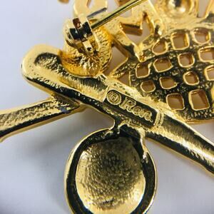 Vintage Ren “Sports Mom” novelty brooch featuring tennis, baseball, football, and soccer details. Gold-tone metal with enamel accents. Signed Ren on back. Perfect for team moms or sports lovers. Very good vintage condition.