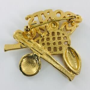 Vintage Ren Sports Mom Brooch Gold Tone Tennis Baseball Football Pin