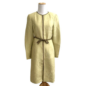 Vintage Rena Lange Coat Pant Set 6 Soft Yellow-Green Jacquard Silk Beaded Belt