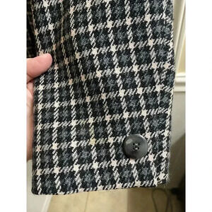 Vintage Rena Rowan For Saville Wool Plaid Houndstooth Blazer Black/Beige Button