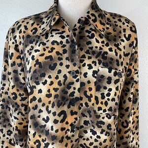Vintage Rena Rowan Cheetah Button Down Shirt Size 8 EUC