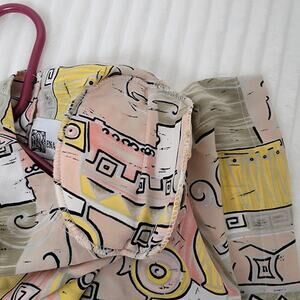 Color/Pattern: Multicolor abstract geometric print (peach, yellow, coral, green, black)