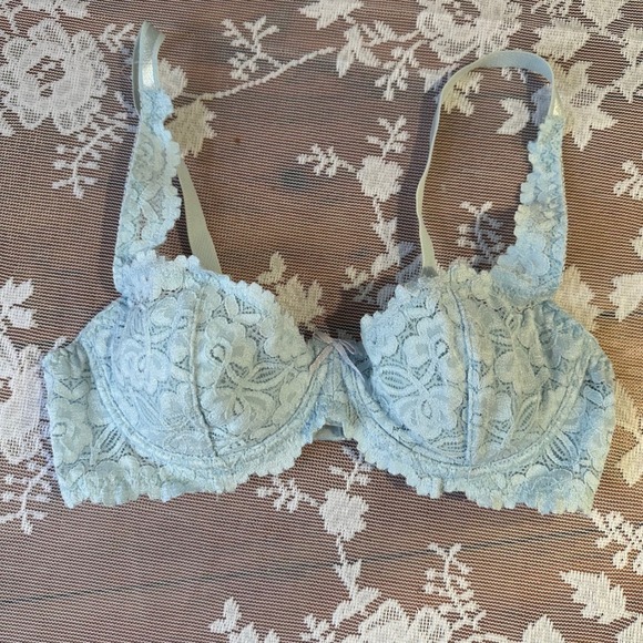 Vintage Rene Rofe Lingerie Light Blue Lace Balconette Bra Style B2141 Size 32B