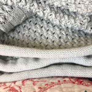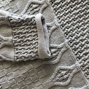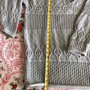 This vintage Over-sized, long sleeve cable knit fisherman sweater is absolutely Gorgeous!! The pictures do not do this gorgeous piece justice. It is perfect to layer, wear with leggings or jeans. It is a teal color. The tag was removed with the size, but I believe it is an XL (relaxed/over-sized). The cuffs and hem are rolled. Comes from a smoke and pet free home. Offers Welcome ❤️