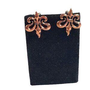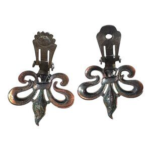 Vintage Renoir Copper Fleur-De-Lis Clip-On Earrings MCM Retro Mid Century