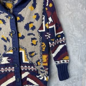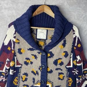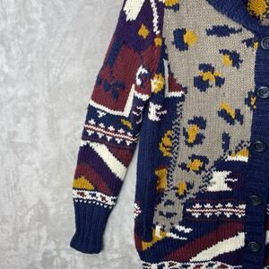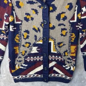 Vintage Replay Womens Small Handmade Knit Chunky Cardigan Leopard Cabincore Cozy