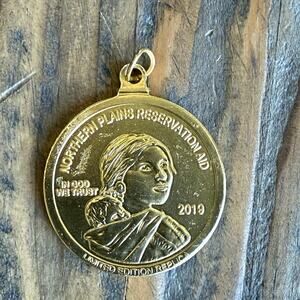 Vintage Replica Sacagawea Dollar Pendant Gold Tone