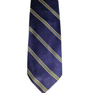 Vintage Repp Necktie Kings Road Sears Mens Navy Green & Yellow Silk