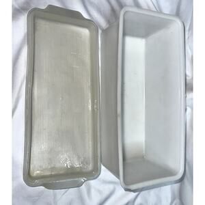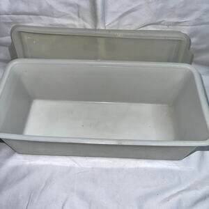 Add charm to your kitchen with this vintage Republic Polly Flex breadbox. Features a sturdy plastic design, classic white finish, and a removable lid. A great collectible piece or functional retro storage for bread and baked goods.