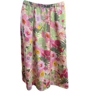Vintage Requirements A-Line Green/Pink/Yellow Floral Lined Midi Skirt