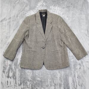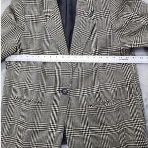 Vintage Requirements Wool Plaid Single Button Blazer Size 14 Petite Black Cream Office Career Preppy Academia 90s
