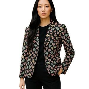 Charming kids jacket with a colorful heart pattern. Perfect for adding a playful touch to any outfit. Size tag removed. Adding measurments. P2P 20” length 22” arms 19”