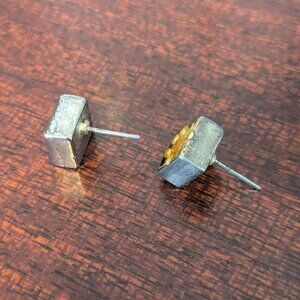 Vintage Resin Floral Earrings Sterling Silver Daisy Square Stud 90’s Y2K