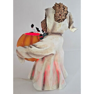 Vintage Resin Halloween Teddy Bear Ghost w/ Jack-O-Lantern & Bats Works U267