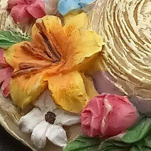Vintage Resin Hat Flowers Bow Pin Brooch