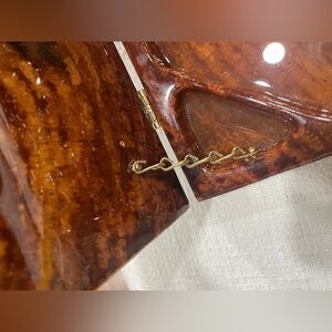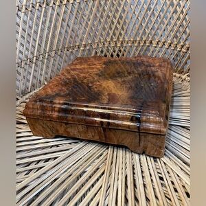 Beautiful vintage resin and wood jewelry box with unique heart-shaped compartments. Rich brown marbled finish with a glossy high-shine surface. Perfect for rings, earrings, trinkets, or display.