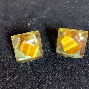 Vintage Resin and Tiger Eye (?) Cufflinks -Stamped