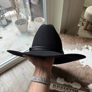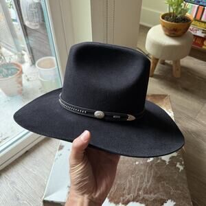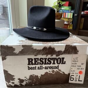 Vintage Resistol Black Cowboy Hat 4x Beaver Eagle Pass 4” Brim Long Oval 6 7/8 L
