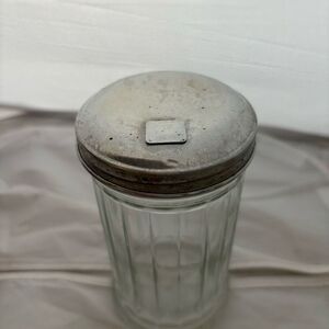 Vintage Restaurant Style Glass Sugar Dispenser. HALCO USA. Ribbed glass with metal lid. Good condition, no chips or cracks.
