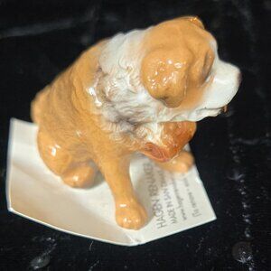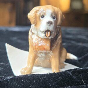 Vintage Retired Hagen Renaker St. Bernard Porcelain Dog Figurine with Barrel