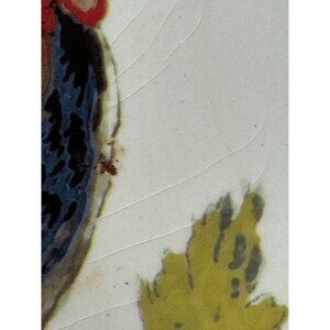 This vintage serving bowl features an intricate rooster design, making it a charming addition to decorative tableware collections.