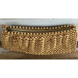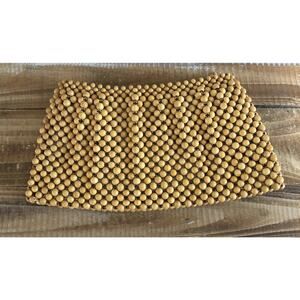 Vintage 1950s Blonde Wood Beaded Clutch Purse