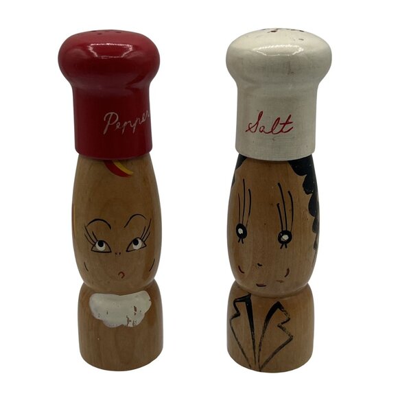 vintage kitchen salt shakers pepper shakers wooden decor dining accessories retro style collectible shakers hand-painted kitchen decor tableware whimsical design character shakers unique gifts