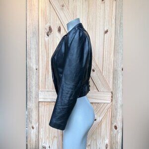 Vintage Retro 70s Wilsons Black Cropped Leather Tuxedo Style Jacket~S~