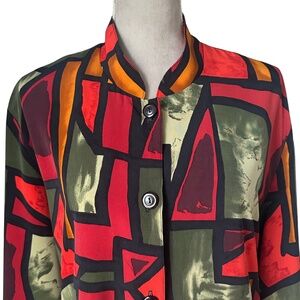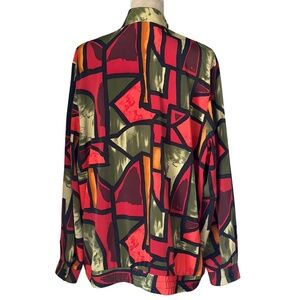 Tags: Vintage Caron Components, Geometric Print Shirt, Abstract Button Down, Retro 80s 90s Top, Bold Statement Blouse, Oversized Vintage Shirt, Artsy Print Top, Modernist Pattern Shirt, Long Sleeve Vintage Blouse, Color Block Retro Shirt, Vintage Made in USA Clothing, Women’s Plus Size Vintage Top, Avant Garde Vintage Shirt, Collector’s Vintage Clothing, Festival Statement Shirt