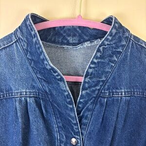 Vintage Retro 80’s Cotton V-Neck Pucker Shoulder V-Neck Snap Denim Jacket (L)
