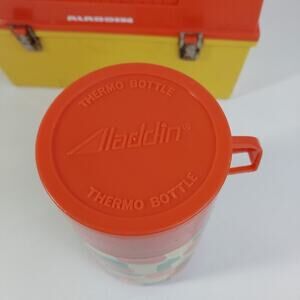Vintage Retro Aladdin USA Plastic Dome Top Lunch Box Yellow & Orange