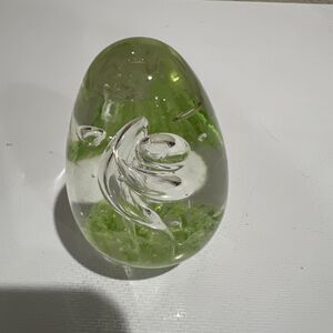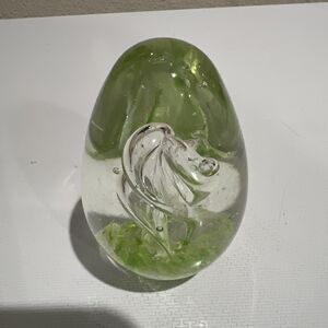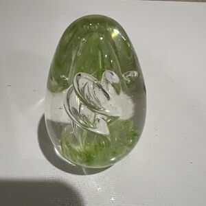 Vintage Retro Art Glass Egg Shape Swirl Spiral Clear Green Paperweight