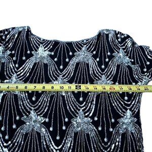 This vintage hand-beaded sequin top showcases intricate craftsmanship with its dazzling star patterns. Ideal for those who appreciate timeless elegance.