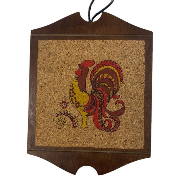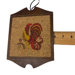 Vintage Retro Bohemian Farmhouse Rooster 1970’s Wall Art Wood & Cork 8”