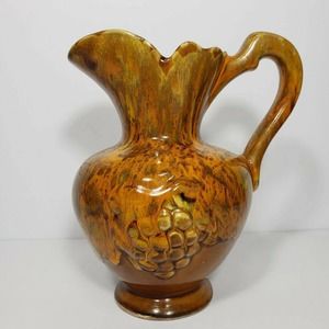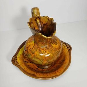 Pitcher has rough, unfinished bottom. Great overall condition. Please view all photos for condition details. The unique dripped glaze design created on the pitcher and bowl make for a one of a kind item.