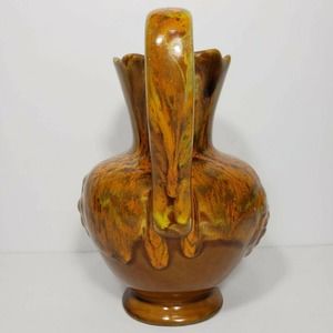 Vintage Retro Cal Style 1108 Orange Drip Glaze Studio Pottery Pitcher Bowl Set