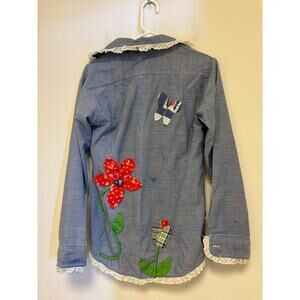 Vintage Retro Chambray Denim Embroidered Blouse Hand Made Hippie