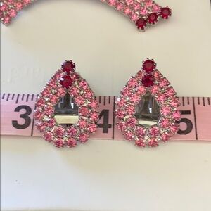 #VintageJewelry #PinkRhinestone #ClipOnEarrings #RetroGlam #StatementJewelry #CostumeJewelry #BroochAndEarringSet #1950sStyle #RhinestoneJewelry #SparklyJewelry #PinupStyle #SilverToneJewelry #ColorfulBrooch #TeardropEarrings #VintageFinds