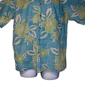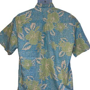 Vintage Retro Cooke Street Hawaiian Shirt Mens M Plumeria Aloha Vacation Blue