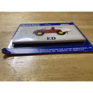 Vintage Retro ED Red Car New Dead Stock Ceramic Door Name Plaque Wall Sign 1984