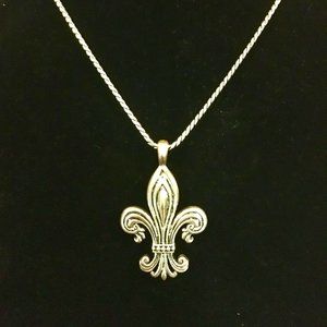 Vintage Retro Fleur de Lis Pendant and Necklace