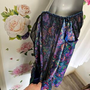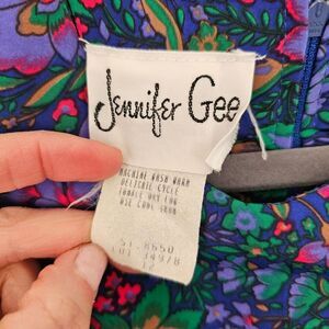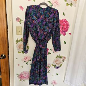 Vintage Size 12 Retro Floral Purple Navy Long Sleeve Dress Shoulder Pads Sash Belt Purple Floralish paisley retro pattern Unlined Elastic at waist Midi-length by Jennifer Gee